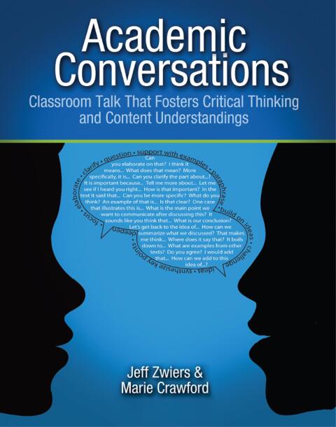 Conversing with others has given insights to different perspectives, helped build ideas, and solve problems. Academic conversations push students to think and learn in lasting ways. Academic conversations are back-and-forth dialogues in which students focus on a topic and explore it by building, challenging, and negotiating relevant ideas. In Academic Conversations: Classroom Talk that Fosters Critical Thinking and Content Understandings authors Jeff Zwiers and Marie Crawford address the challenges teachers face when trying to bring thoughtful, respectful, and focused conversations into the classroom. They identify five core communications skills needed to help students hold productive academic conversation across content areas: Elaborating and Clarifying Supporting Ideas with Evidence Building On and/or Challenging Ideas Paraphrasing Synthesizing This book shows teachers how to weave the cultivation of academic conversation skills and conversations into current teaching approaches. More specifically, it describes how to use conversations to build the following: Academic vocabulary and grammar Critical thinking skills such as persuasion, interpretation, consideration of multiple perspectives, evaluation, and application Literacy skills such as questioning, predicting, connecting to prior knowledge, and summarizing An academic classroom environment brimming with respect for others' ideas, equity of voice, engagement, and mutual support The ideas in this book stem from many hours of classroom practice, research, and video analysis across grade levels and content areas. Readers will find numerous practical activities for working on each conversation skill, crafting conversation-worthy tasks, and using conversations to teach and assess. Academic Conversations offers an in-depth approach to helping students develop into the future parents, teachers, and leaders who will collaborate to build a better world.