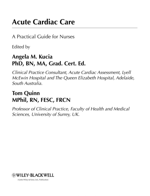 Acute Cardiac Care provides nurses with a comprehensive understanding of the current practice and principles underlying the care and management of acute cardiac conditions. It addresses the management of acute coronary syndromes (ACS) with an emphasis on evidence-based pharmacological management, cardiac emergencies (cardiac arrest, arrhythmia, acute pulmonary oedema, cardiogenic shock), current diagnostic and interventional modalities for the management of ACS, including risk stratification, and the ethical, political, social and economic factors that impact upon the provision of acute cardiac services in Australia and the UK. Edited by renowned academics and clinicians in the field, this practical text will encourage nurses to think critically about evidence and management of acute coronary conditions, and provide a guide on how and where to look for up-to-date evidence and guidelines. KEY FEATURES: A comprehensive and practical guide to the current practice and principles underlying the nursing care of acute cardiac conditions Edited by leading authorities in the field with a wealth of experience in acute cardiac care and resuscitation Has an emphasis on evidence-based practice, encouraging nurses to critically think about their practice Contains learning objectives, key points and activities and further reading guidelines