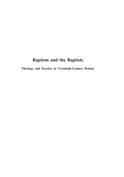 Since its first publication in 2000, Baptism and the Baptists has become the definitive work on the subject. It examines the theology and practice of believers' baptism among twentieth-century Baptists associated with the Baptist Union of Great Britain, and identifies the major influences which have led to its development. In the nineteenth and early twentieth century, the majority of Baptists concentrated predominantly on the mode and subjects of baptism (immersion and believers), understanding the rite merely as an ordinance--the believer's personal profession of faith in Christ. However, in continuity with a tradition of Baptists going back as far as the first Baptists in the second and third decades of the seventeenth century, there were also a significant number of ministers and scholars who saw the inadequacy of this view of baptism both biblically and theologically. This sacramental view developed and grew throughout the twentieth century, and influenced a resurgence of baptismal sacramentalism in the early twenty-first century among Baptists not just in Britain, but also in North America, Europe, and further afield.
