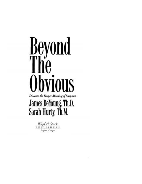 ...Bible students who have felt that earlier methods of interpreting the Bible, while orthodox and secure, result in rather unfruitful 'abstract meaning' will find exciting and challenging ideas in 'Beyond the Obvious'. Stephen A. Hayner, Peachtree Associate Professor of Evangelism and Church Growth, Columbia Theological Seminary Here is a stimulating, thoroughly evangelical, and orthodox challenge to the dominant evangelical paradigm of biblical interpretation known as the single meaning, authorial intent approach.... I believe the book is an impressive and convincing corrective to the one-sided emphasis of some evangelicals on single meaning authorial intent hermeneutics. Alan F. Johnson, Professor of New Testament and Christian Ethics, Wheaton College The authors offer a timely and vigorous challenge to the hermeneutical status quo among evangelicals.... The book will greatly clarify the issues in the current hermeneutical debate. David Fisher, Senior Minister of Colonial Church, Edina, MN This is a noteworthy and valuable effort for recognizing the implications of culture in hermeneutics. By making the Kingdom of God central, a whole Bible view of mission develops from this hermeneutic, deepening and broadening our understanding of God at work in the world. Donald K. Smith, Division of Intercultural Studies, Western Seminary