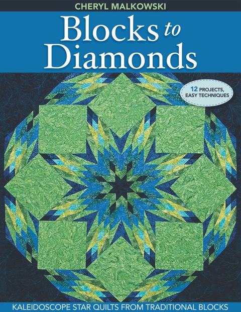The quilt designer shares her technique for turning traditional square blocks into dazzling kaleidoscope star quilts in this guide featuring 12 projects. Quilt designer Cheryl Malkowski is always experimenting with new quilting possibilities. In Blocks to Diamonds, she shares 12 kaleidoscope star quilt patterns that use a simple yet ingenious design strategy: skewing traditional blocks into diamonds—and then forming those diamonds into stars. As Cheryl herself put it, "the results were instantly spectacular and very satisfying." Blocks to Diamonds shows you how to create a complex quilt without the headache. With Cheryl's step-by-step instructions, you will learn how simple techniques can be used to create unique and beautiful kaleidoscope star quilts.