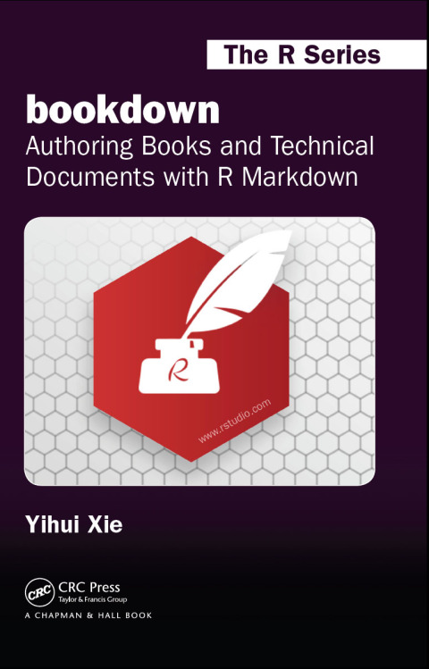 bookdown: Authoring Books and Technical Documents with R Markdown presents a much easier way to write books and technical publications than traditional tools such as LaTeX and Word. The bookdown package inherits the simplicity of syntax and flexibility for data analysis from R Markdown, and extends R Markdown for technical writing, so that you can make better use of document elements such as figures, tables, equations, theorems, citations, and references. Similar to LaTeX, you can number and cross-reference these elements with bookdown. Your document can even include live examples so readers can interact with them while reading the book. The book can be rendered to multiple output formats, including LaTeX/PDF, HTML, EPUB, and Word, thus making it easy to put your documents online. The style and theme of these output formats can be customized. We used books and R primarily for examples in this book, but bookdown is not only for books or R. Most features introduced in this book also apply to other types of publications: journal papers, reports, dissertations, course handouts, study notes, and even novels. You do not have to use R, either. Other choices of computing languages include Python, C, C++, SQL, Bash, Stan, JavaScript, and so on, although R is best supported. You can also leave out computing, for example, to write a fiction. This book itself is an example of publishing with bookdown and R Markdown, and its source is fully available on GitHub.