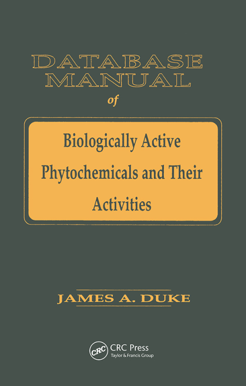 Database of Biologically Active Phytochemicals and Their Activities presents an alphabetical tabulation of some 3,000 biologically active phytochemicals (elements and compounds) from higher plants. The data includes at least one and in some cases as many as 25 biological activities for each phytochemical. The database also provides data on effective dose, inhibitory concentrations, and lethal and/or toxic doses. Entries after 1990 indicate the source of the data. Database of Biologically Active Phytochemicals and Their Activities makes it possible to locate the concentration of many compounds in plants and compare this data with dosage information to calculate how much of a given plant food it would take to cause lethality, antioxidant activity, hypoglycemic activity, or artemicidal activity. Using WordPerfect (TM) 5.1's search function, you can find compounds by entering a key word in their name (e.g., choline or salicyl-), locate all compounds with a given activity (e.g., hypotensive), or list all compounds for which ED50 data is entered or reported.
