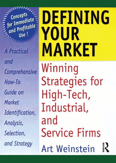 Visionary companies build markets today to be market leaders tomorrow. This book provides the blueprint. Defining Your Market: Winning Strategies for High-Tech, Industrial, and Service Firms contains research, case studies, and literature reviews on market definition to help marketers, managers, researchers, and strategic planners formulate profitable marketing strategies. Timely and practical, this book offers a research-based methodology for defining markets that will help your company determine relevant markets and make it the most competitive business in the industry. Although market definition is the foundation for formulating business strategies and is critical to corporate performance, marketers and top management often rely on intuition or incomplete analyses when targeting markets. This text discusses the marketing methods used by leading companies and executive and provides you with the knowledge to create strategies that will work for your company. Defining Your Market examines the topics that will help your company become more successful now and into the next century, including: customer and competitive-driven market definitions the five core dimensions of market definition-- customer needs, customer groups, technology, products, and competition managerial implications related to strategic planning, formulating the marketing mix, integrating marketing and technology, and global strategy strategies for businesses for redefining markets and successfully competing in the 21st century the impact company size has on marketing strategies how to avoid the dangers of creating a market definition that is too narrow and limiting or one that is too broad and overlooks profitable niches in the market Each chapter of Defining Your Market features exercises that will help you understand new concepts and allows you to put these methods to immediate and profitable use. You will be able to learn about the tools and techniques that work for Andersen Consulting, Dell, General Electric, Intel, Merck, and Microsoft, and dozens of leading business marketers.Defining Your Market provides you with strategies that will help you define and redefine the most relevant and profitable markets for a successful and competitive business.