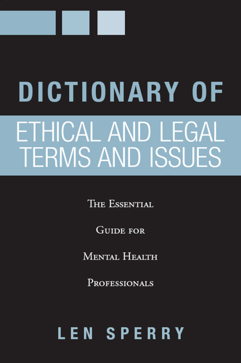 The professional practice of counseling and mental health can often be complex and litigious. While there are many professional ethics textbooks, there are few, if any, supporting resources to assist in mastering basic terminology, or to offer easy access to important legal opinions in everyday practice. The Dictionary of Ethical and Legal Terms and Issues is an invaluable resource for students and practitioners alike who need to navigate that complexity. The book blends ethical, legal, and professional issues along with a dictionary for the mental health professional in one handy volume. An essential resource in any professional library, this book will be of interest to anyone who needs a ready guide to the myriad ethical and legal terms and issues encountered in both training and practice.
