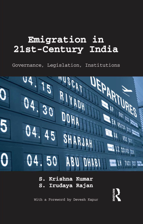 Emigration in 21st-Century India is the first definitive exposition of contemporary Indian labour migration. The book provides a comprehensive appraisal of the policies, legislation and institutional architecture governing emigration at both federal and state levels. It posits that, geographically, emigration is now a more inclusive, pan-India phenomenon with many distinct features. It draws critical attention to the multiple dualities in Indian emigration, showing how the artificial distinction between a universal pravasi (‘expatriate’ or ‘migrant’) and a restricted aam pravasi (‘common emigrant’) distorts emigration governance. On the basis of extensive data from the Kerala Migration Survey (KMS) and National Sample Survey Organisation (NSSO) Rounds, it projects the emerging profile of the emigrant from new source states as also the likely number of migrants by 2021, drawing cross-country comparisons where appropriate. The work will be invaluable to scholars of migration and diaspora studies, economics, development studies and sociology, as well as policy makers, administrators, academics, and non-governmental organisations in the field.