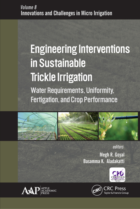 Improving agricultural water use efficiency (WUE) is vitally important in many parts of the world due to the decreasing availability of water resources and the increasing competition for water between different users. Micro irrigation is an effective tool for conserving water resources. Studies have revealed a significant water savings, ranging from 40% to 70% under drip irrigation compared with surface irrigation. This new volume, Engineering Interventions in Sustainable Trickle Irrigation: Irrigation Requirements and Uniformity, Fertigation, and Crop Performance, presents valuable research that evaluates crop water and fertigation requirements, examines optimum irrigation and fertigation scheduling, and analyzes the performance of agricultural crops under micro irrigation. With an interdisciplinary perspective, this volume addresses the urgent need to explore and investigates the current shortcomings and challenges of water resources engineering, especially in micro irrigation engineering. The volume discusses crop water requirements, fertigation technology, and performance of agricultural crops under best management practices. The chapter authors present research studies on drip irrigated tomato, chilies, cucumber, eggplant, cabbage, garlic, sugarcane maize, cashew nut, sapota, banana, mango, and blueberries. Removing the research gap, this volume provides new information that will be valuable to those involved in micro irrigation engineering.