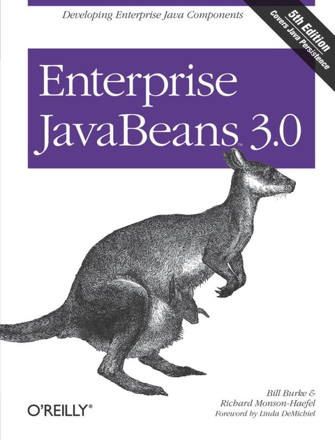 If you're up on the latest Java technologies, then you know that Enterprise JavaBeans (EJB) 3.0 is the hottest news in Java this year. In fact, EJB 3.0 is being hailed as the new standard of server-side business logic programming. And O'Reilly's award-winning book on EJB has been refreshed just in time to capitalize on the technology's latest rise in popularity. This fifth edition, written by Bill Burke and Richard Monson-Haefel, has been updated to capture the very latest need-to-know Java technologies in the same award-winning fashion that drove the success of the previous four strong-selling editions. Bill Burke, Chief Architect at JBoss, Inc., represents the company on the EJB 3.0 and Java EE 5 specification committees. Richard Monson-Haefel is one of the world's leading experts on Enterprise Java. Enterprise JavaBeans 3.0, 5th Edition is organized into two parts: the technical manuscript followed by the JBoss workbook. The technical manuscript explains what EJB is, how it works, and when to use it. The JBoss workbook provides step-by-step instructions for installing, configuring, and running the examples from the manuscript on the JBoss 4.0 Application Server. Although EJB makes application development much simpler, it's still a complex and ambitious technology that requires a great deal of time to study and master. But now, thanks to Enterprise JavaBeans 3.0, 5th Edition, you can overcome the complexities of EJBs and learn from hundreds of practical examples that are largeenough to test key concepts but small enough to be taken apart and explained in the detail that you need. Now you can harness the complexity of EJB with just a single resource by your side.