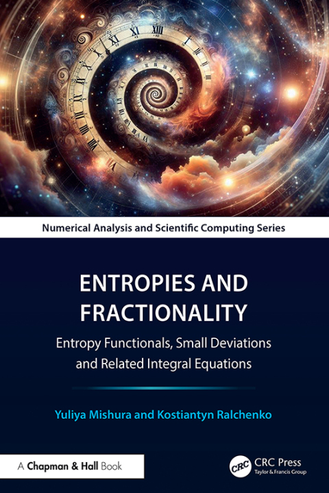 Entropies and Fractionality: Entropy Functionals, Small Deviations and Related Integral Equations starts with a systematization and calculation of various entropies (Shannon, Rényi, and some others) of selected absolutely continuous probability distributions. The properties of the entropies are analyzed. Subsequently, a related problem is addressed: the computation and investigation of the properties of the entropic risk measure, Entropic Value-at-Risk (EVaR). Next, the book computes and compares entropy values for the one-dimensional distributions of various fractional Gaussian processes. Special attention is then given to fractional Gaussian noise, where the authors conduct a detailed analysis of the properties and asymptotic behavior of Shannon entropy. Additionally, two alternative entropy functionals are introduced which are more suitable for analytical investigation. Furthermore, relative entropy functionals for the sum of two independent Wiener processes with drift are considered, and their minimization and maximization are explored. A similar problem is addressed for a mixed fractional Brownian motion (i.e., the sum of a Wiener process and a fractional Brownian motion) with drift. The entropy minimization problem is reduced to a Fredholm integral equation of the second kind, and its unique solvability is thoroughly investigated. In the final part of the book, the optimization of small deviations for mixed fractional Brownian motion with trend is studied. This problem is closely related to the minimization of relative entropy functionals and is solved using similar techniques and results, which leads to the same class of integral equations. Since solving such equations is challenging due to the presence of an additional singularity in the kernel, efficient numerical methods have been developed to address this difficulty. Features Useful both for mathematicians interested in problems related to entropy and for practitioners, especially specialists in physics, finance, and information theory Numerous examples and applications are provided, with rigorous proofs