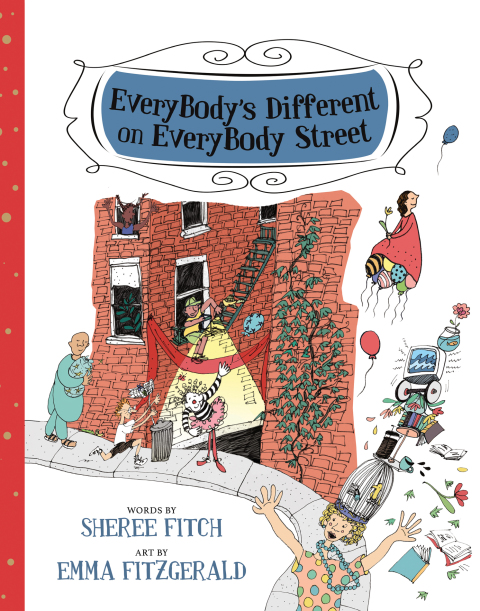 The award-winning poet and author of Summer Feet offers delightful rhyming picture book that helps children embrace diversity. If ever you go travelling On EveryBody Street You'll see EveryBody's Different Than EveryOne you meet Sheree Fitch's playful words lead you into this beautiful children's book and invite you to celebrate our gifts, our weaknesses, our differences, and our sameness. Fitch displays her wit and mastery of words in quick, rollicking rhymes that are complemented by Emma FitzGerald's lively illustrations. EveryBody's Different on EveryBody Street was originally produced in 2001 as a fundraiser to commemorate the 10th Anniversary of the Festival of Trees in support of the Nova Scotia Hospital and to raise awareness for mental illness and addiction. "With a style reminiscent of Quentin Blake, FitzGerald's illustrations of people letting their freak flag fly complement Fitch's exuberant, playful, and poignant rhymes." ― Quill & Quire (Toronto, ON) "Fitch's lyrical prose is enhanced by the very beautiful illustrations of Emma FitzGerald. The illustrations are done in bold and bright colors, and are very rich in detail which provides a superb backdrop for this poem about individual differences." ― Canadian Materials Magazine