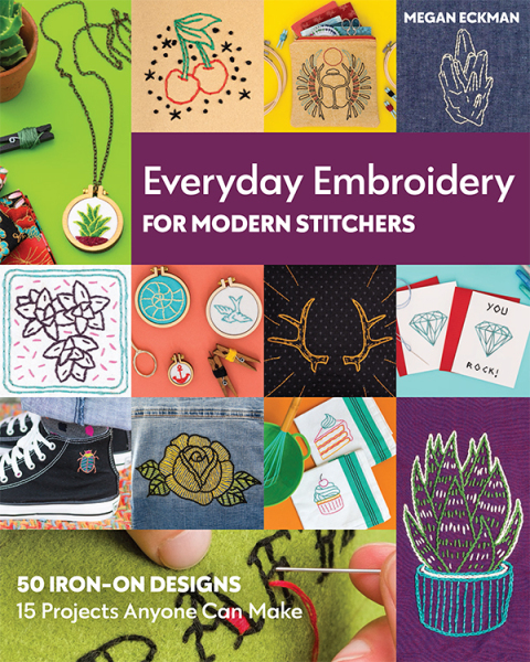 Enjoy these 15 fun embroidery projects you can finish in a day or a weekend, with 50 designs to choose from. Stitch something awesome today! From the creative mind of Megan Eckman come 15 edgy and fun embroidered projects to sew. Just choose your designs, iron them on, and stitch along the lines. Mix and match 50 on-trend designs like crystals and succulents to decorate accessories and home decor—even personalizing the things you already wear and love like denim jackets and canvas shoes. Download the simple embroidery pattern outlines to print as many times as you want. Just dipping your toes into embroidery? With handy stitch guides and practical advice, even beginners will be able to start a project today and finish by the weekend! Get started with embroidery! Sew 15 fun projects that are approachable, practical, and awesome Go retro, mystical, or botanical with 50 themed embroidery ideas to download and print Mix and match motifs to choose your own adventure—even embroider your own apparel