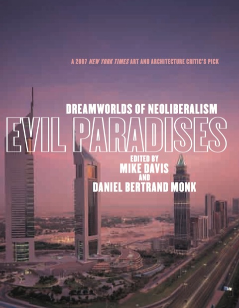 Evil Paradises, edited by Mike Davis and Daniel Bertrand Monk, is a global guidebook to phantasmagoric but real places—alternate realities being constructed as “utopias” in a capitalist era unfettered by unions and state regulation. These developments—in cities, deserts, and in the middle of the sea—are worlds where consumption and inequality surpass our worst nightmares. Although they read like science fiction, the case studies are shockingly real. In Dubai, where child slavery existed until very recently, a gilded archipelago of private islands known as “The World” is literally being added to the ocean. In Medellín and Kabul, drug lords—in many ways textbook capitalists—are redefining conspicuous consumption in fortified palaces. In Hong Kong, Cairo, and even the Iranian desert, burgeoning communities of nouveaux riches have taken shelter in fantasy Californias, complete with Mickey Mouse statues, while their maids sleep in rooftop chicken coops. Meanwhile, Ted Turner rides herd over his bison in 2 million acres of private parkland. Davis and Monk have assembled an extraordinary group of urbanists, architects, historians, and visionary thinkers to reflect upon the trajectory of a civilization whose deepest ethos seems to be to consume all the resources of the earth within a single lifetime.