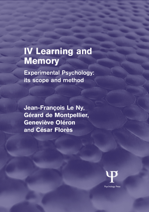 First published in English in 1970, the first chapter of the book is concerned with conditioned reactions. Jean François le Ny discusses ways in which conditioned reactions are acquired and the laws governing their function. The second contributor, Gérard de Montpellier, looks at different types of learning. The varying processes involved in both animal and human learning are considered, together with some general factors and mechanisms of learning. The third section of the book by Geneviève Oléron deals with the phenomenon of transfer. Among the topics included are the determination of transfer effects, transfer in perceptual-motor activities and explanations of transfer. In the final chapter, César Florès examines memory, forgetting and reminiscence. The discussion covers methodology, the influence of material, the role of practice, the part played by attitudes, motivation and emotive reactions in the memory process, as well as the importance of organisation of memory tasks on the part of the subject.