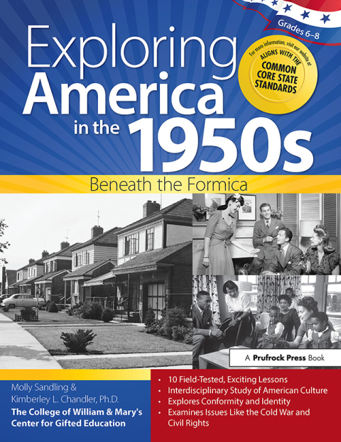 Exploring America in the 1950s: Beneath the Formica is an interdisciplinary humanities unit that looks at literature, art, and music of the 1950s to provide an understanding of how those living through the decade experienced and felt about the world around them. Through the lens of "identity," it explores life in America and the myriad groups that coexisted in harmony and, often, with friction. Cultural icons like Elvis and the Beat poets are examined alongside larger issues such as the Cold War, conformity, and Civil Rights struggles. The unit uses field-tested instructional strategies for language arts and social studies from The College of William and Mary, as well as new strategies, and it includes graphic organizers and other tools for analyzing primary sources. It can be used to complement a social studies or language arts curriculum or as standalone material in a gifted program. Grades 6-8
