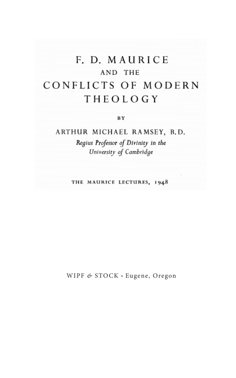 Though the literature about Maurice is growing, I hope that the distinctive aim of this volume may give it a place within that literature. I have not attempted to provide a systematic account of Maurice's teaching, but to trace the theological conflicts which Maurice faced and to relate them to the chief theological tendencies of the last 150 years. I do not think that any previous attempt has been made to evaluate Maurice's teaching on Atonement and Sacrifice as a whole, or to examine his methods of Biblical exegesis in relation to subsequent trends of Biblical study. On no two subjects did Maurice more originally anticipate some of the theological work of the present day, and speak in a way which comes home to us with relevance and force.