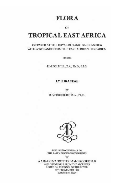 This book is a comprehensive review of the genera of Lythraceae, a flowering plant family of mostly trees and shrubs, found in tropical East Africa. It presents information on their character, occurrence, habitat, phenotypic variations and distribution of each of the species under these genera.