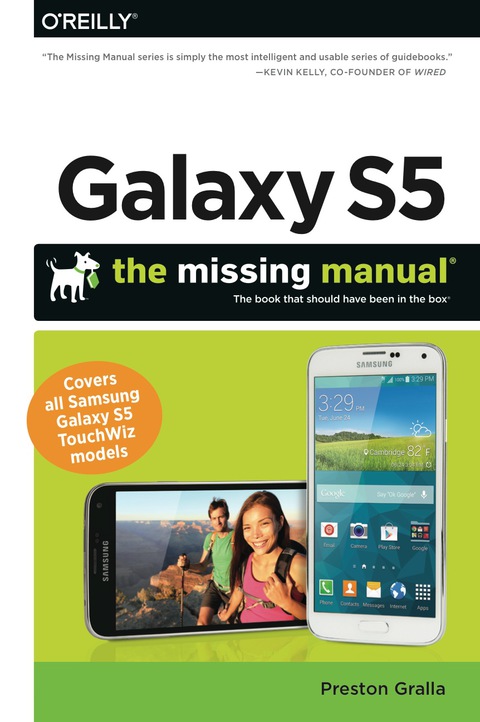 Get the most out of Samsung’s Galaxy S5 smartphone right from the start. With clear instructions from technology expert Preston Gralla, this Missing Manual gives you a guided tour of Samsung's new flagship phone, including great new features such as the fingerprint scanner, heart rate sensor, and Download Booster. You’ll get expert tips and tricks for playing music, calling and texting, shooting photos and videos, and even getting some work done. The important stuff you need to know: Get connected. Browse the Web, manage email, and download apps from Google Play through WiFi or 3G/4G network. Keep in touch. Call, text, chat, videochat, conduct conference calls, and reach out with Facebook and Twitter. Capture and display images. Shoot, edit, show, and share photos, slideshows, and high-definition videos. Play and manage your music. Buy music from Google Play or Amazon and listen to it with Galaxy S5’s Music app. Work anywhere. Access your files, company network, calendar, and contacts—and work with Google Docs. Connect to Google Maps. Use geolocation and turn-by-turn drive directions to find your way. Stay fit with S Health. Use this built-in app to keep track of fitness goals, walking, heart rate, blood pressure, and more.
