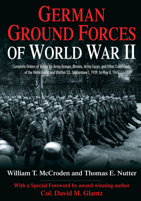 A groundbreaking and comprehensive order of battle for German ground troops in WWII, from the invasion of Poland to the final defeat in Berlin. An indispensable reference work for Second World War scholars and enthusiasts, German Ground Forces of World War II captures the continuously changing character of Nazi ground forces throughout the conflict. For the first time, readers can follow the career of every German division, corps, army, and army group as the German armed forces shifted units to and from theaters of war. Organized by sections including Theater Commands, Army Groups, Armies, and Corps Commands, it presents a detailed analysis of each corresponding order of battle for every German field formation above division. This innovative resource also describes the orders of battle of the myriad German and Axis satellite formations assigned to security commands throughout occupied Europe and the combat zones, as well as those attached to fortress commands and to the commanders of German occupation forces across Europe. An accompanying narrative describes the career of each field formation and includes the background and experience of many of their most famous commanding officers.