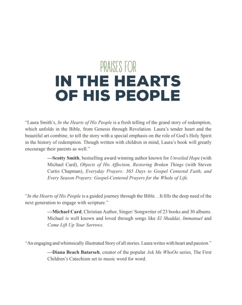 This Christian children’s book uses Bible verses and beautiful illustrations to teach kids about the wonders of God, His love, and the Trinity. From the creation of the world to Noah’s Arc and other episodes from the Bible, In the Hearts of His People teaches children how the Father has sent His love for mankind through His Holy Spirit . . . bringing forth His plan for their redemption. God sends His Spirit and Son, Jesus, to Earth at just the right time. And Jesus brought with Him a message to the world―proving His perfect love for all His children.
