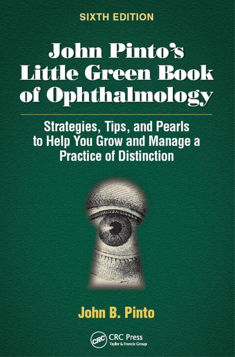 The classic reference text for surgeons and managers alike that has been improving ophthalmic practices for decades, John Pinto’s Little Green Book of Ophthalmology: Strategies, Tips, and Pearls to Help You Grow and Manage a Practice of Distinction, Sixth Edition, has been updated into a new edition. Author John B. Pinto, a world-renowned expert on the business of ophthalmic practice, has brought his decades of expertise to bear in this comprehensive guide to practice management. Inside, Pinto covers everything from the basics of business planning to esoteric and complex topics unique to ophthalmology. Topics include: Strategic business planning Leadership, governance, and discipline Finance, accounting, and patient accounts management Staff evaluation, training, and supervision Marketing and development Managing physicians Operations enhancement Facility design and management Improving an optical dispensary This Sixth Edition features updates and edits throughout the book as well as 9 new appendices covering the latest trends and advice in ophthalmic administration. It is also designed in a flexible format, allowing readers to read it straight through, or just hunt down advice on the focused problems facing their practice. As the business of ophthalmology continues to change, the proven guidance of John Pinto’s Little Green Book of Ophthalmology, Sixth Edition, will help any practice adapt and thrive.