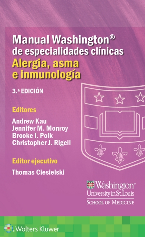 Conciso, portátil y fácil de usar, Manual Washington® de especialidades clínicas. Alergia, asma e inmunología ofrece información esencial sobre el manejo de alergias, asma y otros trastornos inmunológicos en pacientes hospitalizados y ambulatorios. Esta 3.ª edición, como las anteriores, proporciona una orientación práctica sobre el diagnóstico, la investigación y el tratamiento, e incluye contenido de vanguardia sobre descubrimientos biomédicos y nuevos tratamientos.Este manual es ideal para estudiantes de medicina y para médicos residentes, internos y especialistas que necesitan acceso rápido y actualizado a la información científica y clínica de esta especialidad que cambia con rapidez. También es útil como recurso de primera línea para médicos internistas y de atención primaria. El contenido, revisado a fondo de principio a fin, incluye un nuevo capítulo sobre diagnóstico en alergia e inmunología y secciones ampliadas sobre alergia a los alimentos mediada por inmunoglobulinas y no mediada por la edad.