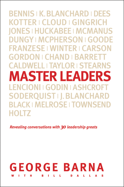 Imagine the chance to sit down with 30 of the world’s best-known and most-respected leaders as they share their secrets to success. That’s Master Leaders—the most valuable leadership book of the decade, now available in softcover. Based on personal interviews and conversations with “the greats” (including Ken Blanchard, Colleen Barrett, Ben Carson, Tony Dungy, Newt Gingrich, Seth Godin, Patrick Lencioni, and many others), Master Leaders offers 16 key distinctives that you need to know in order to be a successful leader. Coauthored by George Barna (Revolution) and Bill Dallas (Lessons from San Quentin), Master Leaders contains top-of-the-line insider information on leading wisely and well . . . from the people who know.