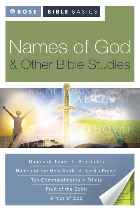 Names of God and Other Bible Studies is one of the best-selling Bible studies on the names of God available today. Includes optional fill-in-the-blank Bible study guide. This handbook is packed with: Full-color illustrations and pictures Color-coded charts with information at a glance Scriptures and references Easy-to-understand explanations and summaries And more! This full-color book contains studies on the: Names of God Names of Jesus Names of the Holy Spirit Trinity Ten Commandments Lord's Prayer Beatitudes Fruit of the Spirit Armor of God. Names of God and Other Bible Studies gives you enough basic Bible teaching to use in a six-week Bible study or small group or class. The optional worksheets and handouts can be downloaded by clicking the link above. Perfect for small groups, Sunday school classes, church groups, and for personal study. Why buy a Rose Bible Basic Book? Full color: Attractive layout holds people's attention Easy to understand: Good for readers of all levels Save money. It is made up of 9 full-color Rose Publishing pamphlets and costs less than 4 pamphlets Six weeks of material: Use personally or for a Bible study or small group. You can study at any pace, 6 weeks, 8 weeks, 12 weeks