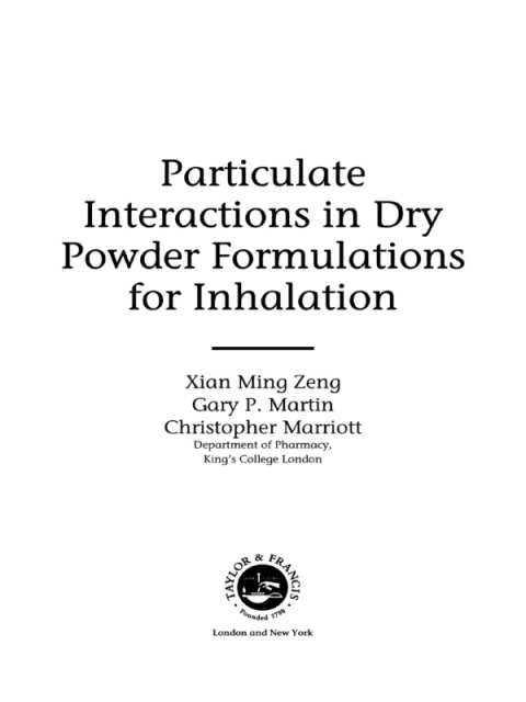 Interactions between drug particulates are crucial in determining drug dispersion and deaggregation, and ultimately delivery efficiency. This book combines principles established in surface and colloidal chemistry with pharmaceutical powder technology. It discusses some of the factors affecting particulate interactions, and particle-fluid interaction in the respiratory tract. It review some of the studies carried out in dry powder formulation development, and proposes possible strategies in improving DPI efficiency. The majority of these principles are applicable to other pharmaceutical solid dosage forms (e.g. tablets and capsules).