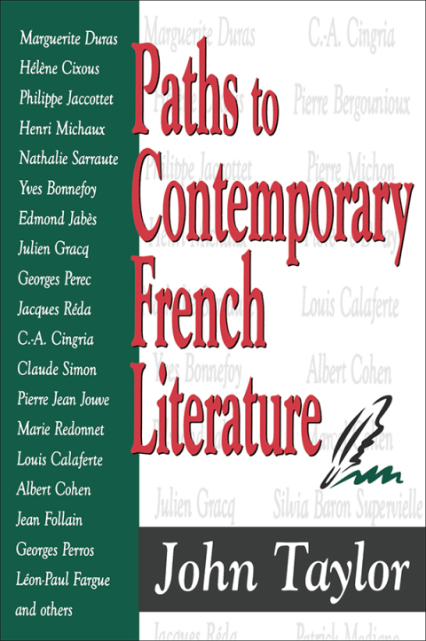 Although the great French novelists of the last two centuries are widely read in America, there is a widespread notion that little of importance has happened in French literature since the heyday of Sartre, Camus, and the nouveau roman. Some might argue that even well read Americans are ignorant about what is happening in European literature generally. Certainly, there has never been so few translations of foreign books in the United States, or so little coverage of foreign writers. Curious American readers need new, up-to-date information and analyses about what is happening elsewhere. Paths to Contemporary French Literature is a stimulating and much-needed guide to the major currents of one of the world's great literatures. This critical panorama of contemporary French literature introduces English-language readers to over fifty important writers and poets, many of whom are still little known outside of France. Emphasizing authors who are admired by their peers (as opposed to those with overnight reputations), John Taylor offers a compelling insider's view. The pioneering essays included in this book offer incisive analyses of the ideas motivating current writing and delve into a writer's or poet's entire output. Although some names may be familiar (Marguerite Duras, Hulbne Cixous, Philippe Jaccottet, Henri Michaux), the reader obtains fresh reappraisals of their seminal work. Especially noteworthy, however, are Taylor's lively introductions to many other key writers who either have not yet crossed the English Channel, let alone the Atlantic. Combating the notion that French literature is overtly intellectual, inaccessible, or interested only in formal experimentation, Taylor shows that many French writers are instead acutely inquisitive about the outside world, shrewd observers of reality, even very funny. Although not conceived as a reference book, the volume possesses some qualities of a reference work: a good bibliography, reliable dates and biographical facts. Paths to Contemporary French Literature will be of interest to students of French literature and culture, literary scholars, and readers of contemporary fiction and poetry.