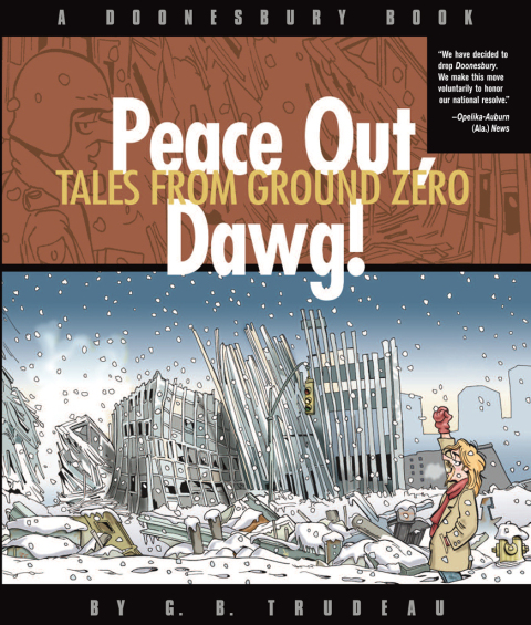 As 9-11 shakes the Doonesbury world, many of its denizens are drawn inexorably toward Ground Zero--Mike to attend a memorial service for a former employer; B.D., reactivated for crowd control and celebrity tourism; Marcia Feinbloom to hit on firefighters; and Zonker to deliver potent fruitcakes to weary rescue workers. Those on the home front are no less affected by events: "I no longer care what Madonna had for breakfast," laments Boopsie, proof positive that Everything Has Changed. Half a world away, in Al-Qaeda Qountry, a burka-clad Roland Hedley is captured by a freelance warlord, then wounded by a can of Spam during a massive friendly food drop. Feyzabad Station Chief Havoc's effort to rescue the downed journalist speaks well for the new, improved CIA, which has somehow managed to parlay its "massive" intelligence failures into cult status on the nation's campuses. How else to explain Jeff Redfern's new internship with "Acme Imports"--and his sudden affinity for shaken-not-stirred libations? Meanwhile, former inside trader Phil Slackmeyer watches from his deathbed as the effort to smoke out evildoers expands to include the entire management team of Enron. Prominent among them is "Jimmy Jack Jumbo" Andrews, head of over 400 Caymans-based businesses, who calls his old friend to ask the question on many an ex-exec's mind: "What's prison like?" And back at the White House pressroom, NPR attack-dog Mark has questions of his own, like, "What time will you be launching the cover-up?" and "Will there be a lunch?" Yes, excavating Enron's smoking crater will be a long and dirty job--even if the president barely knows "Mr. Lay," the disgraced CEO with whom he exchanged 350 letters. As Dubya assures us, "I did not have political relations with that man."