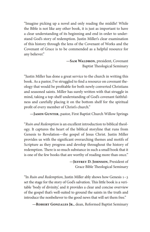 How is the totality of Scripture to be understood? How is sinful man brought into a relationship with God? In the opening pages of Scripture, we read of God's covenant with Adam and all he represents (humanity). If Adam obeys the covenant he will live, yet if he disobeys, he and all in him, will die. Upon the fall of Adam in Gen 3 we read of another covenant, an unconditional one, of the serpent bruising the Seed of the Woman's heel and the Seed of the Woman bruising the serpent's head (Gen 3:15). We read of grace. This book operates as a primer that outlines the Covenant of Works and the Covenant of Grace from Gen 2-3 to uncover the reality of man's ruin in the garden and his redemption in Christ.