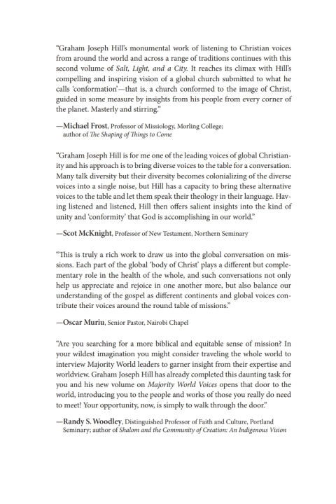 Jesus is calling his church to be a multiethnic and missional people who listen and learn from the many voices of world Christianity. Graham Joseph Hill issues a moving call for churches to be missional by being conformed to the image of Jesus Christ. Hill does this by exploring the thinking of twenty-five Asian, African, Latin American, Indigenous, African American, diaspora, Caribbean, Oceanian, Eastern European, and Middle Eastern pastors and theologians. These are as diverse as Melba Padilla Maggay, Emmanuel Katongole, Lamin Sanneh, Oscar Muriu, Ruth Padilla DeBorst, Pope Francis, Richard Twiss, Lisa Sharon Harper, Willie James Jennings, Ada Maria Isasi-Diaz, Soong-Chan Rah, and Mitri Raheb.These voices show us the future of missional churches in world Christianity. When churches are conformed to Christ they make disciples, heal a broken world, and witness to Jesus and his gospel. Jesus forms us in his image and moves us to be a people of shalom, humility, character, justice, peace, wisdom, prayer, beauty, and witness. The church has had a Reformation but now it needs a Conformation. Hill explores biblical themes and the voices of world Christianity to show that a missional church is conformed to the image of the incarnate, crucified, resurrected, and glorified Christ. Conformity to Christ is the heart of missional ecclesiology and discipleship.