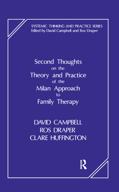 Second Thoughts on the Theory and Practice of the Milan Approach to Family Therapy is a full discussion of the way the original techniques of the Milan Approach have been affected by current thinking in the family therapy field. Hypothesizing, neutrality and circularity, for example, are all redefined in response to the challenge of new clinical problems, such as child abuse, and new thinking from areas such as linguistics and feminine.