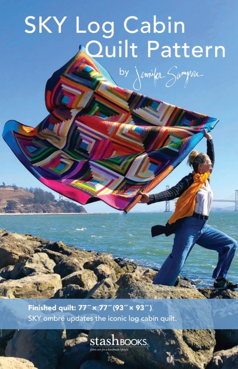 Play with color and value using ombré fabrics Modern and traditional design cross paths in this stunning Log Cabin quilt. Quilters of every level can create this simple yet versatile quilt. Characterized by strips (logs) surrounding squares, the repeated squares give the quilt pattern depth, and colors create dimension. The block-making approach is thoughtful, with value and color placement studied even though the overall effect has a scrappy appeal. Look closer and see how the blocks create a secondary jumbo star pattern. Jennifer Sampou is known for her gorgeous ombré fabrics, which she incorporates into the Log Cabin quilt. The final quilt size is 77" x 77" with the option of a 93" x 93" quilt included A beautiful quilt that makes the most of your ombré fabrics Tips for building large blocks and making improvisational choices