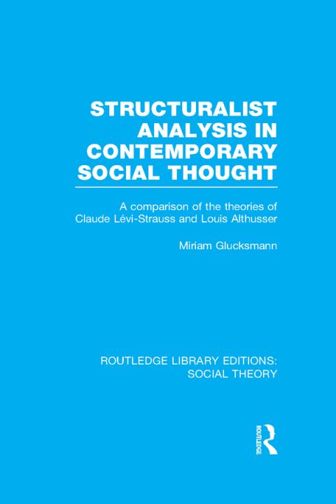 The primary concern of this book is to investigate whether or not structuralism constitutes a distinctive framework in the social sciences. The author focuses on two major structuralist thinkers, Louis Althusser and Claude Lévi-Strauss. She analyses and compares the structure of their theory, and places them within the context of their respective disciplines. Dr Glucksmann began working on this book at a time when structuralism was at the height of its popularity in France, and was thought to be a homogenous alternative to bourgeois sociology. The progress of her study implicitly reflects the developments and divergences within structuralist thought that have emerged since then. In particular, she examines the differences between the political and philosophical thought of Althusser and Lévi-Strauss, which have become increasingly manifest.