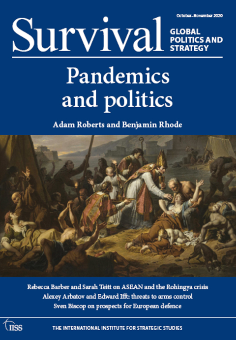 Survival, the IISS’s bimonthly journal, challenges conventional wisdom and brings fresh, often controversial, perspectives on strategic issues of the moment. In this issue: Adam Roberts explores pandemics and politics through the ages, arguing that trust in leadership is essential in the struggle against infectious diseases Rebecca Barber and Sarah Teitt contend that ASEAN should take a more activist approach to the Rohingya crisis to salvage its credibility Greg Austin assesses the strategic implications of China’s weak cyber defences Øystein Tunsjø casts doubt on the prospect of the Arctic becoming a theatre of great-power conflict And eight more thought-provoking pieces, as well as our regular book reviews and Noteworthy column.
