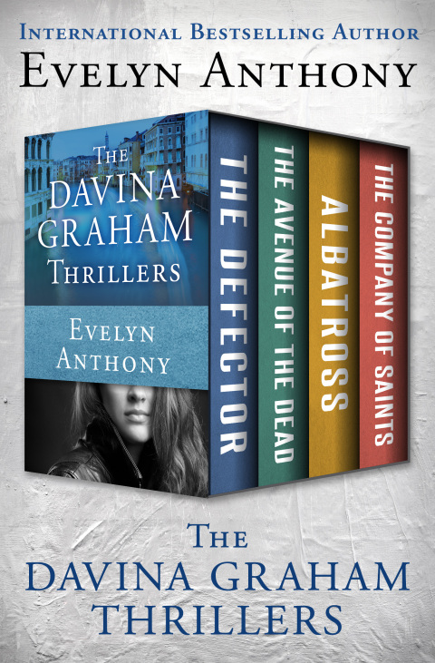 The complete series starring the British female operative—from the international bestselling author and “powerful plotter of spy stories” (The Daily Telegraph). The Defector: MI6 agent Davina Graham knows better. But she’s fallen hopelessly in love with the married KGB defector she’s been ordered to debrief. In exchange for information, Ivan Sasanov insists his wife and daughter back in the USSR must be brought to England and given asylum. But the KGB is already on to him—he barely escapes an assassination attempt. And now his wife has been arrested. With Sasanov’s daughter in imminent danger, Graham knows there’s only one way to save the family of the man she loves. “Veteran romance-suspenser Anthony continues to sharpen her talents—and this East/West espionage . . . is one of her best.” —Kirkus Reviews The Avenue of the Dead: The British-born wife of Edward Fleming, the US president’s assistant under-secretary of state and close friend, has appealed to the British ambassador for sanctuary. Elizabeth Fleming claims her husband tried to murder her because she found out he was passing information to the Russians. Though it was ruled an accident, his first wife died in a fire in their Mexico vacation home. To find out the truth, Davina Graham follows a labyrinthine trail from the inner circles of Washington, DC, to Mexico, where she will use herself as bait to trap an elusive criminal known as the Plumed Serpent. “Solid and classy entertainment.” —Kirkus Reviews Albatross: A mole high in the ranks of Britain’s Secret Intelligence Service has been feeding national secrets to the Soviets. Davina Graham goes undercover to root out the traitor, code named Albatross. Could it be her boss, Brigadier Sir James White, a twenty-year SIS veteran, months away from retirement? Humphrey Grant, White’s second-in-command, whose public persona conceals damning sexual secrets? Or John Kidson, the technocrat married to Graham’s beautiful, pampered sister? The MI6 agent must move quickly before time runs out for them all. “If you like your spy stories to have a touch of class, you will enjoy Evelyn Anthony’s Albatross.” —The Sunday Times The Company of Saints: Now the first female head of Britain’s Secret Intelligence Service, Davina Graham is taking a well-deserved holiday in Venice, when on the Grand Canal, the US Secretary of Defense and his daughter are blown up in a gondola. When more assassinations follow, Graham is convinced that Igor Borisov, the power-hungry head of the KGB, is behind the executions. Working with Intelligence agent Colin Lomax, her ex-lover, they uncover a shadowy organization called the Company of Saints, a private brigade of hired killers whose chilling end game is just beginning. “Written and plotted with all the skill one associates with Ms. Anthony and readable as ever.” —The Irish Times