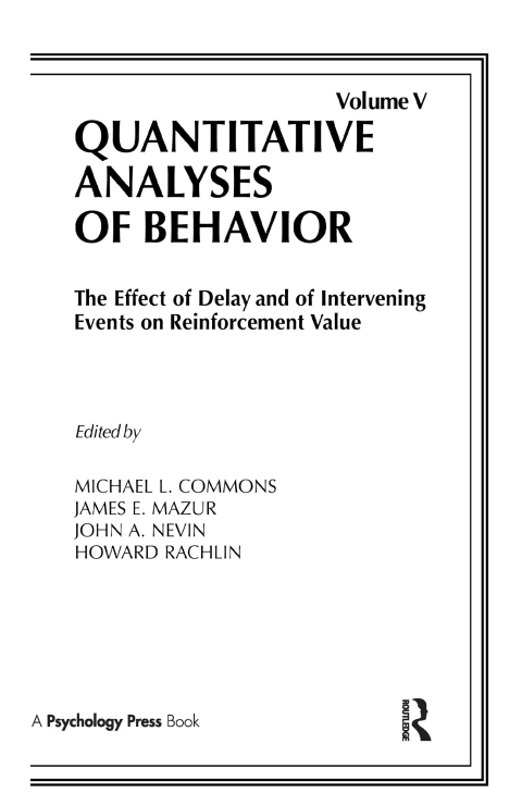 First published in 1986. This is Volume V of six in a series on Quantitative Analyses of Behavior. Quantitative analysis now generally refers to the fact that theoretical issues are represented by quantitative models. An analysis is not a matter of fitting arbitrary functions to data points. The volumes in the present series have been written for behavioral scientists. Those concerned with issues in the study of how behavior is acquired and then allocated in various environments-biologists, psychologists, economists, anthropologists, and other researchers, as well as graduate students and advanced undergraduates in those areas-should find volumes in this series to be state-of the-art readers and reference works. Each volume of the series examines a particular topic that has been discussed at the annual Symposium on Quantitative Analyses of Behavior held at Harvard University. This volume, V, addresses the topic of how reinforcement value is affected by delay and intervening events. Self-control studies are also presented and discussed.
