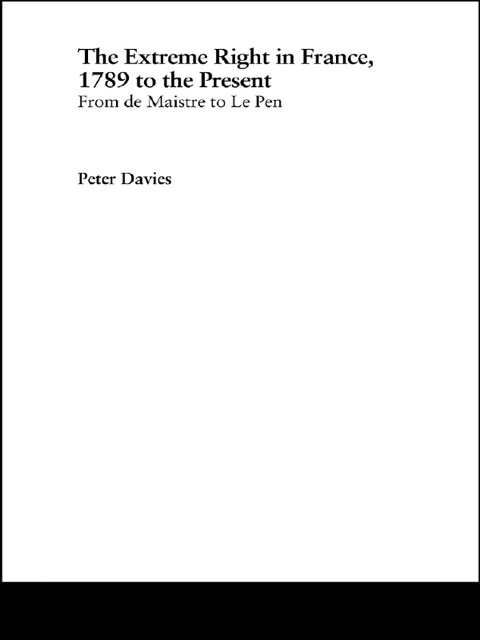 The Extreme Right in France, 1789 to the Present surveys the history of a fascinating but contentious political and intellectual tradition. Since 1789 the far right has been an important factor in French political life and in different eras has taken on a range of guises including traditionalism, ultra-royalism, radical nationalism, anti-Semitism and fascism. This book is structured around the five main phases of extreme right activity, and the author explores key questions about each: * Counter-revolution - what was the legacy of Joseph de Maistre's writings? * Anti-Third Republic protest - how was the 'new right' of the 1880s and 1890s different from the 'old right' of previous decades? * Inter-war fascism - how should we characterise the phenomenon of fascisme française? * Vichy - why did Pétain and Laval collaborate with the Nazis? * The Post-war far right - what is the relationship between Poujadism, Algérie Française and Le Pen's FN?