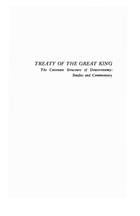 In Treaty of the Great King, Kline gives a detailed analysis and strong evidence for supporting the interpretation of Deuteronomy as being a legal document between Israel and YHWH that was patterned after ancient Near Eastern treaties, with Moses as its primary compiler. These studies were foundational in Kline's career as a covenant theologian.