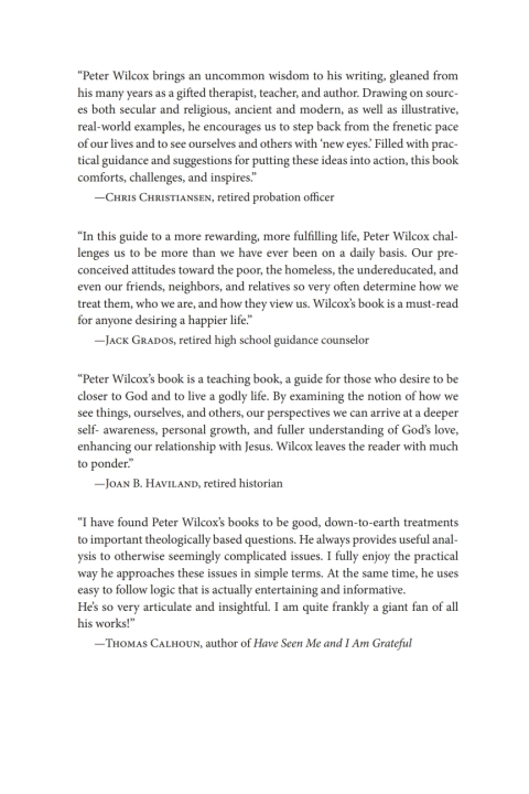 In the Gospel of Mark, chapter 10, Jesus passes by Bartimaeus, a blind beggar. Bartimaeus calls out, "Master, let me see again." Jesus cures him and gives him back his sight.So many things in life depend on the way we see things. This book is an invitation to look at the way we see things in life. We may not be physically blind like Bartimaeus, but each of us can be blind in our own ways.Reading through these pages will hopefully give you the opportunity to change the way you look at something that holds you back from growing psychologically and spiritually. Using the Scriptures, stories, and examples from over thirty years as a psychotherapist and spiritual director, as well as insights from a variety of authors, this book invites us to reflect on our own ways of being blind, so that like Bartimaeus, we might be able to call out to Jesus, "Master, let me see again."